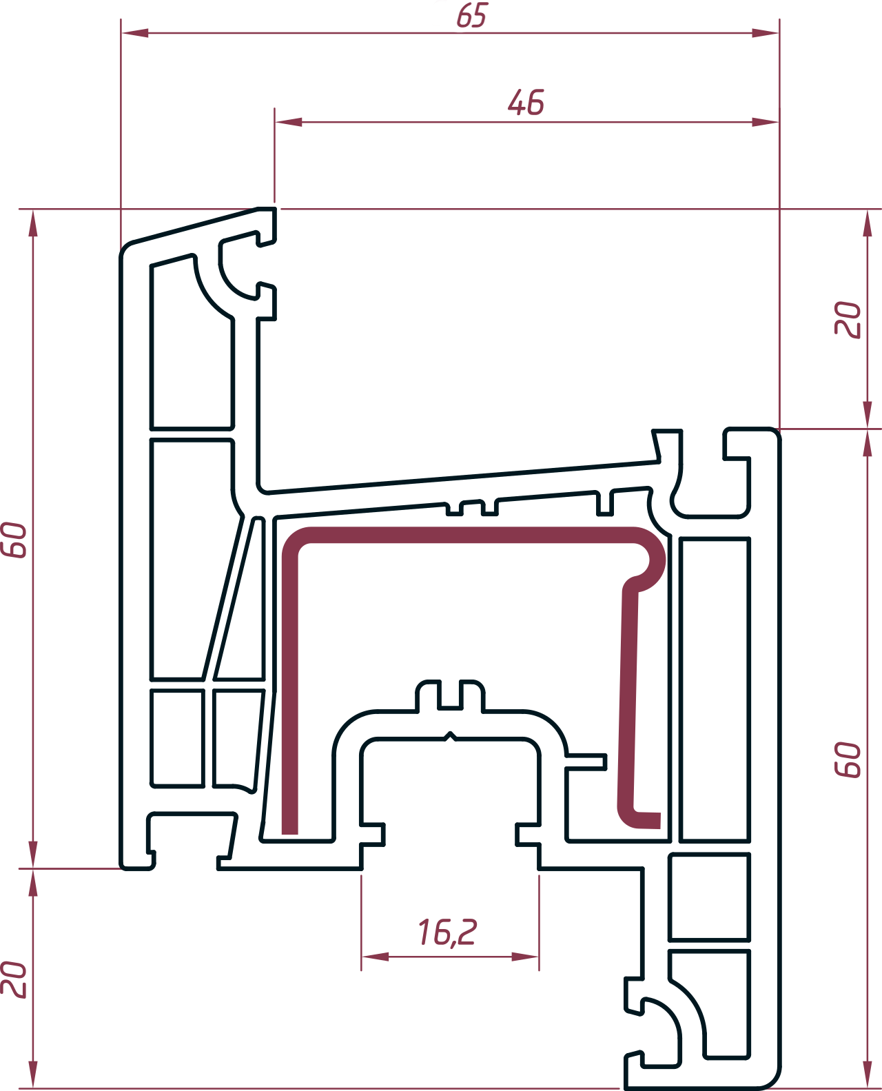 Монтажная ширина (рама / створка), мм ________________________65/65